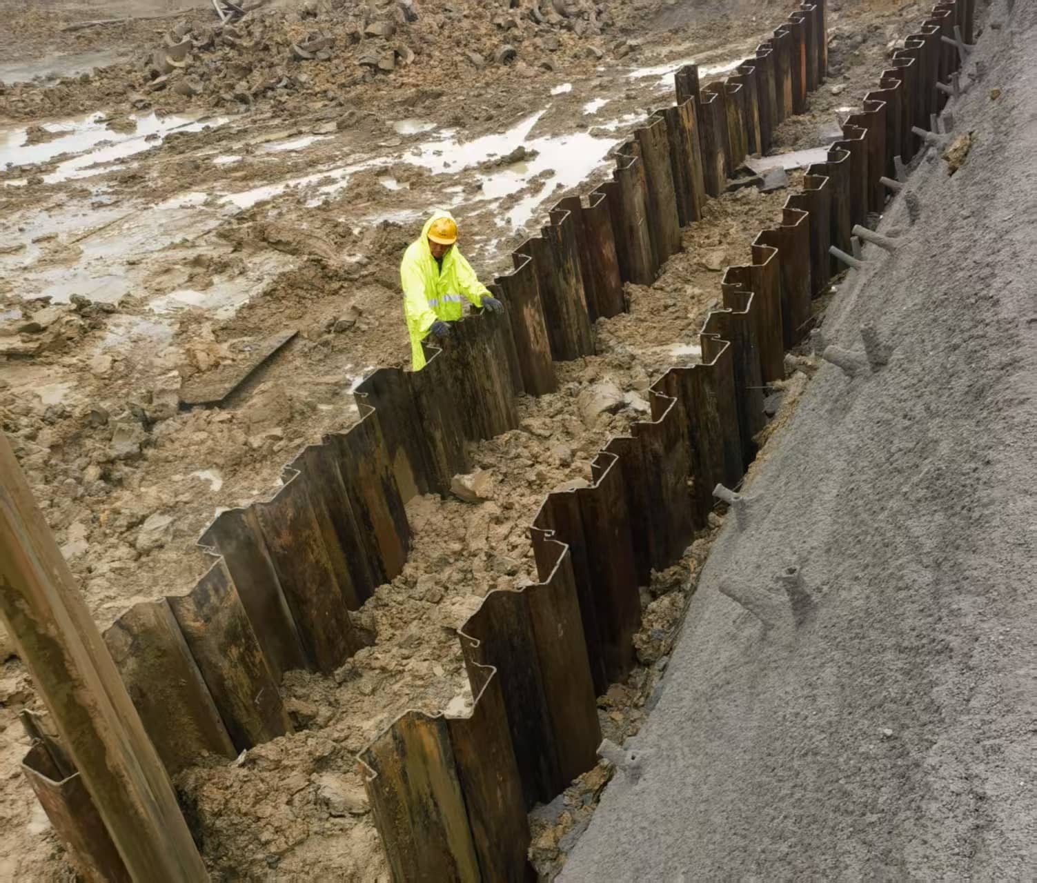 拉森钢板桩质量高(高强度,轻型,隔水性优越);使用拉森钢板桩施工,施工简略,工期缩短、经久性优越;拉森钢板桩费用廉价、交换性优越,可反复运用;使用拉森钢板桩施工有明显的环保结果,很多削减了取土量和混凝土的运用量,有用地维护了地质条件;救灾抢险的使用拉森钢板桩时效性较强,如防洪、塌方、塌陷、流沙等;拉森钢板桩可以处置并处理发掘进程中的一系列问题;对于施工要求而言,施工用拉森钢板桩完全可以降低对空间的要求。
