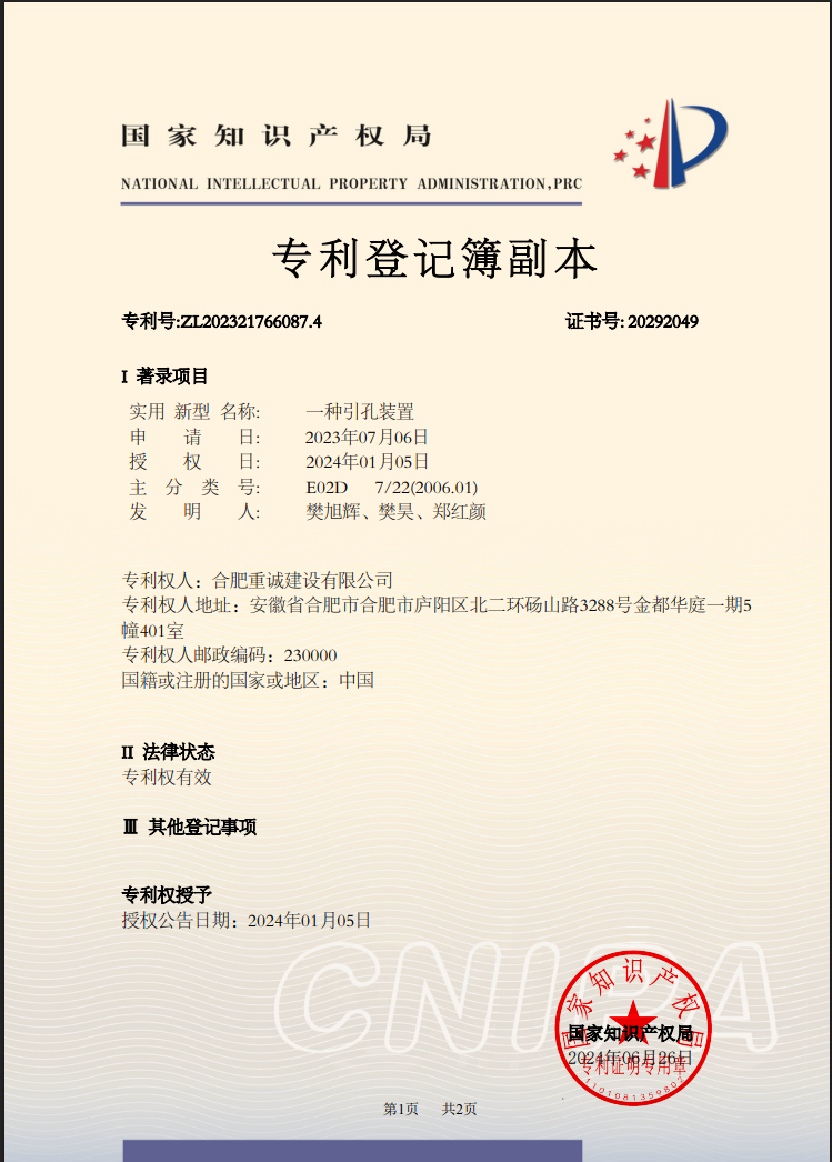 ② 一种基坑施工注浆装置(专利号:2024203614521)
